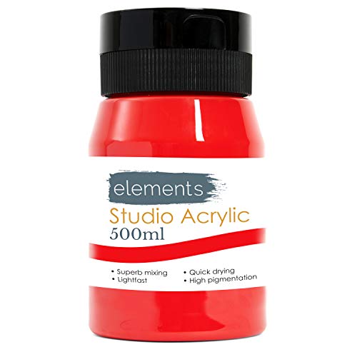 Elements 500ml Acrylic Paint 500 ml Tub - Quick Drying Acrylic Paints with High Pigment and Vibrant Colour Pigment Cadmium Red