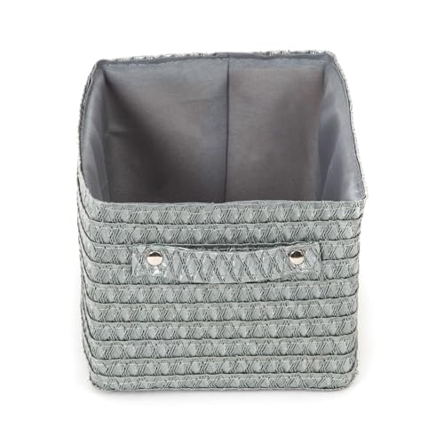 Compactor Rectangle Storage Basket with Pull Handle, Woven Storage Box Reinforced with Cardboard, For Cupboard, Desk and Shelf Storage, Grey with Matching Inner Lining, Lilou Range