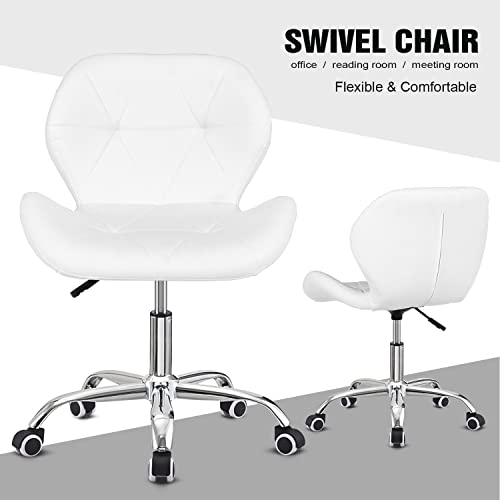 Hadwin Modern PU Leather Swivel Office Chair, Height Adjustable Padded Armless Desk Chair with Wheels for Home Office, White