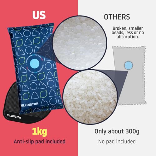 Hillington Car Dehumidifier Set - 1KG Professional Moisture Absorber with Dashboard Anti-Slip Mounting Mat in Blue Blue