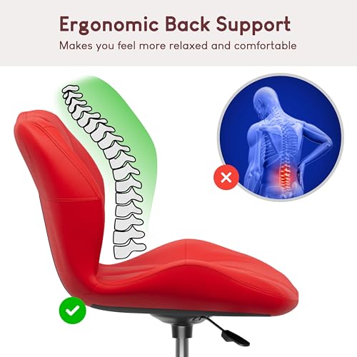 Vida Designs Geo Office Computer Chair, Red, Gaming Secretary Adjustable Swivel Legs Lift Chrome Pu Faux-Leather (UKFR Certified)