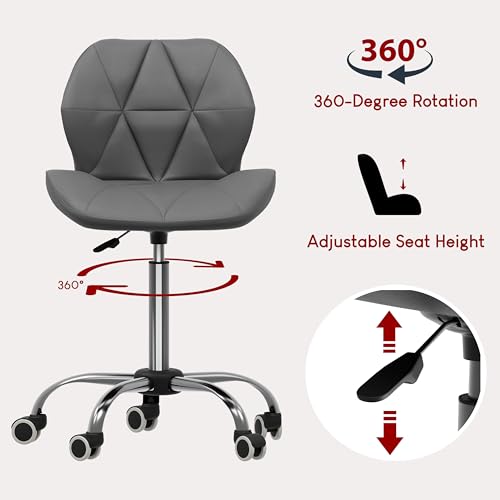 Vida Designs Geo Office Computer Chair, Grey, Gaming Secretary Adjustable Swivel Legs Lift Chrome PU Faux-Leather