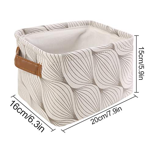 LessMo 4 Pack Storage Baskets, Collapsible Mini Storage Boxes, Canvas Fabric Waterproof Storage Bins made from Cotton and Linen, for Toys, Bathroom, Closets, Playroom (TREE-LEAF, Thick fabric)