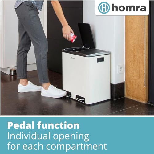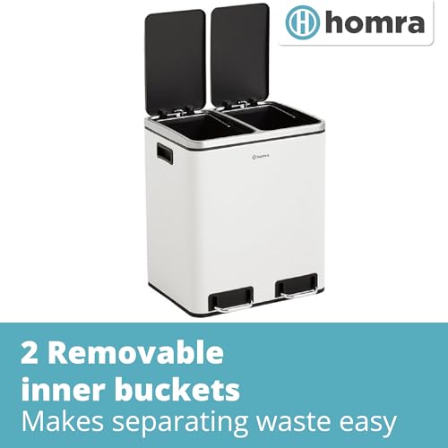 Homra Dual Kitchen Bin 30l – Double Rubbish Bins 2x15l – 2 Compartment Pedal System – Twin Section Waste&Recycling Separation – Soft Close Design – Inner Buckets with Handles – Stainless Steel