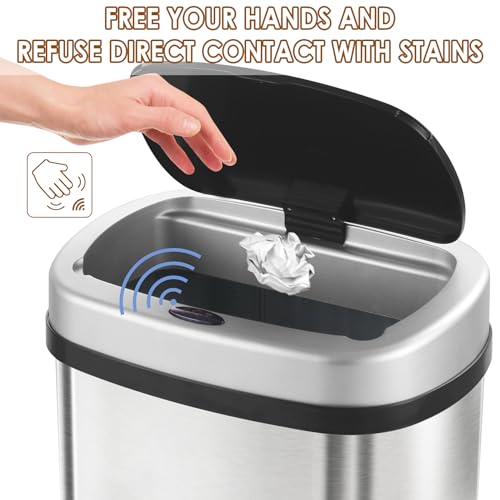 display4top Stainless Steel Automatic Touchless Kitchen Bathroom Sensor Bin,Trash Can,Touch Bin (58LRound)