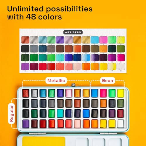 ARTISTRO Watercolour Paint Set, Vivid Colors in Portable Box, Including Palette Metallic and Fluorescent Colors Perfect Travel Watercolor Set for Artists, Amateur Hobbyists and Painting Lovers