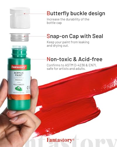 fantastory Acrylic Paint Set, 24 x 60 ml with 12 Brushes; Christmas Acrylic Paint, Waterproof; For Canvas/Wood,/Ceramics,/Models; For Beginners, Art Students, Hobby Artists
