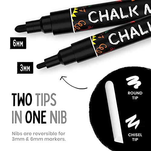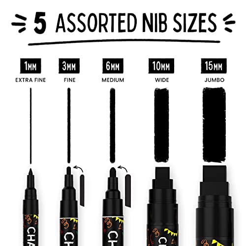 5 Black Chalkboard Chalk Pens - Black Dry Erase Markers for Blackboard, Chalkboard Signs, Windows, Glass | Variety Pack - Fine & Jumbo Size Ink Pen (1mm, 3mm, 6mm, 10mm, 15mm)