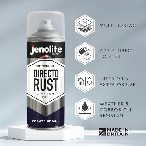 JENOLITE Directorust Spray Paint Satin Finish | COBALT BLUE | 400ml | Direct To Rust Spray Paint For Metal | All-In-One Multi Surface Paint for Metal, Wood, Plastic, Ceramic | RAL 5013