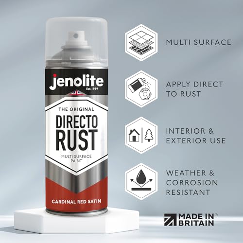 JENOLITE Directorust Spray Paint Satin Finish | CARDINAL RED | 400ml | Direct To Rust Spray Paint For Metal | All-In-One Multi Surface Paint for Metal, Wood, Plastic, Ceramic | RAL 3001