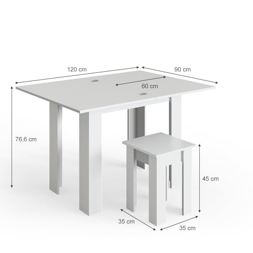 Vicco Dining table with chair Roman, White, 90 x 60 cm