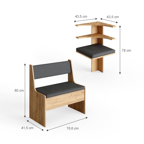 Vicco Dining room corner bench Roman, Gold power oak/Anthracite, 120 x 120 cm