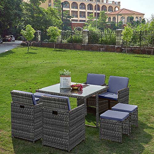 Panana 8 Seater Rattan Garden Dining Set with Table, 4 Chairs & 4 Stools, Cube Space Saving Outdoor Furniture for Patio, Conservator, Garden