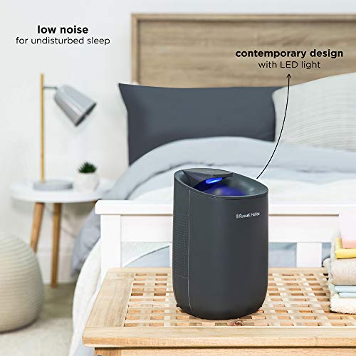 Russell Hobbs RHDH1101G Ozone Free, 750ml/day 2 in 1 Grey Dehumidifier/Air Purifier, 20m2 Room Size, LED Lighting & Captures Bacteria, for Home, Kitchen, Basement, Garage, Caravan