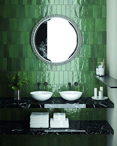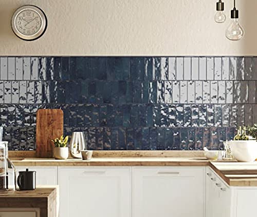 Atlas Ceramics - Porcelain Gloss Tile - Versatile Laying Options - Bathroom & Shower Wall - Kitchen or Bathroom Splashback - Traditional Art - Nolita Marine 2.5 in X 7.8 in