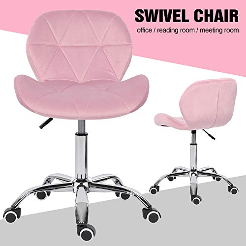 Hadwin Modern Velvet Swivel Office Chair, Height Adjustable Padded Armless Desk Chair with Wheels for Home Office, Pink