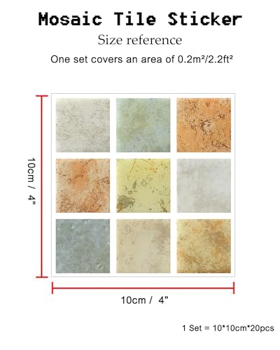 FBBULES 20PCS Mosaic Style Decorative Tile Stickers, Self Adhesive Wallpaper Waterproof Peel and Stick on Wall Glass Furniture for Kitchen Bathroom Room Transformation, Orange (10x10cm/4x4inch)
