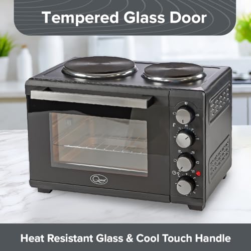Quest 35379 26L Twin Hob Countertop Rotisserie and Convection Mini Oven/Adjustable Temperature/Accessories Included / 60 Mins Timer & Auto Shut Off with Bell