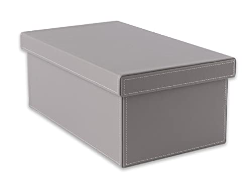 OSCO Grey Faux Leather DVD BOX | 4 Pack | Holds 26 DVDs | Shoe Storage | Stackable | Blue Ray | CDs | VHS | 38.5L x 23W x 15H cm
