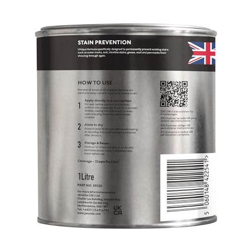 JENOLITE Stain Blocker Paint | WHITE | 1 Litre | Damp Seal Paint | Damp & Anti Mould Coating For Walls & Ceilings | Immediately Block Stains, Mould & Mildew