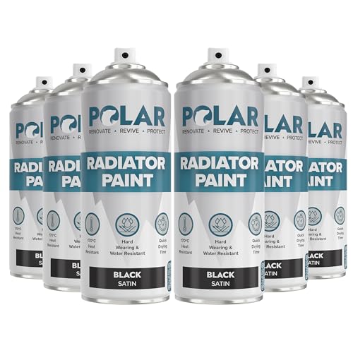 Polar Satin Black Radiator Spray Paint - 6 x 400ml | Heat Resistant up to 100ºC | Quick Drying & No Primer needed | Exterior Surfaces of Radiators & Hot Water Tanks | Heat Resistant Radiator Paint