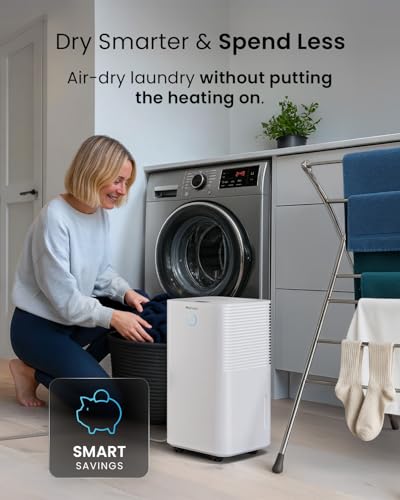 Pro Breeze® OmniDry 12L/Day Dehumidifier with Automatic Humidity Sensor & Display, 24Hr Timer, Laundry Drying, Continuous Drainage (White, 12 Litres + Smart App)