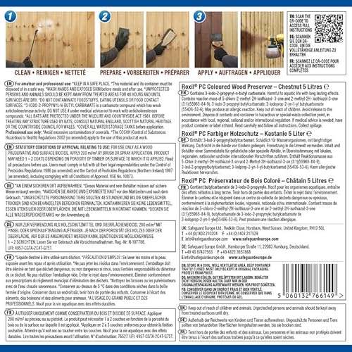 Roxil Wood Stain Preserver 5 Litre (Chestnut) Fast-Drying Satin Finish for Decking, Fence, Shed, Furniture. Up to 5 Year Protection for Indoor & Outdoor