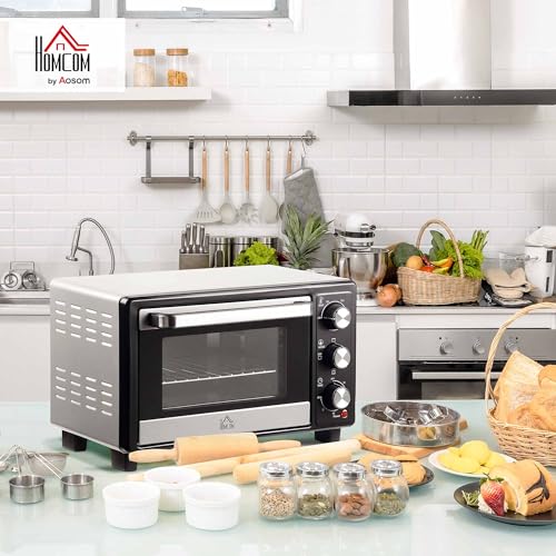 HOMCOM Mini Oven, 16L Countertop Electric Grill, Toaster Oven with Adjustable Temperature, 60 Min Timer, Crumb Tray, Baking Tray, Wire Rack, Tray Handle, 1400W, Silver