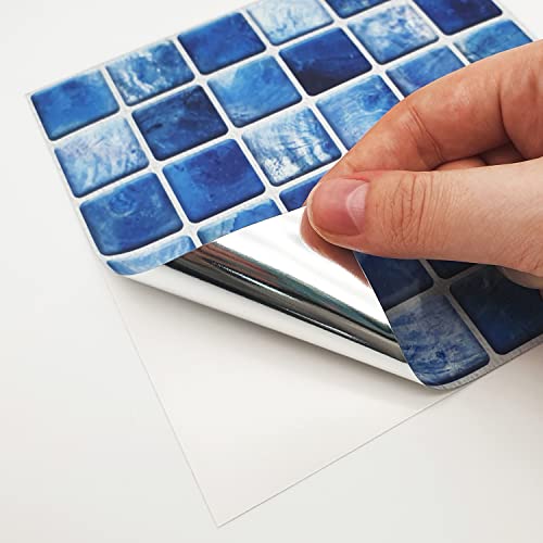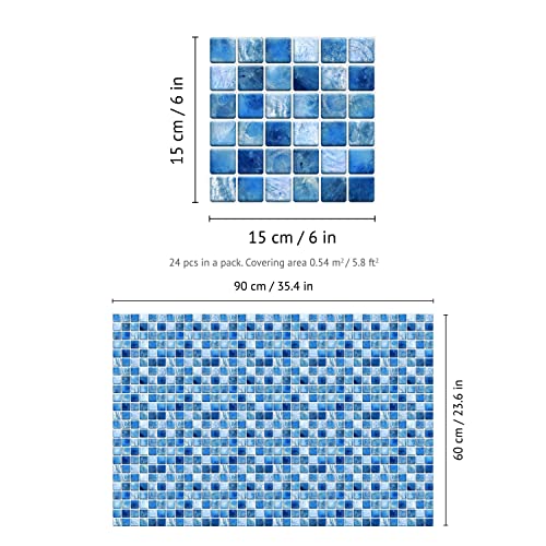 WALPLUS 15cm(6") 24 Pieces Mother Pearl Blue Jewel Mosaic Wall Tile Sticker Set Peel and Stick Backsplash Decals Vinyl Home Decors Splashback for Kitchen Bathroom Tile Paint Stick on Wall