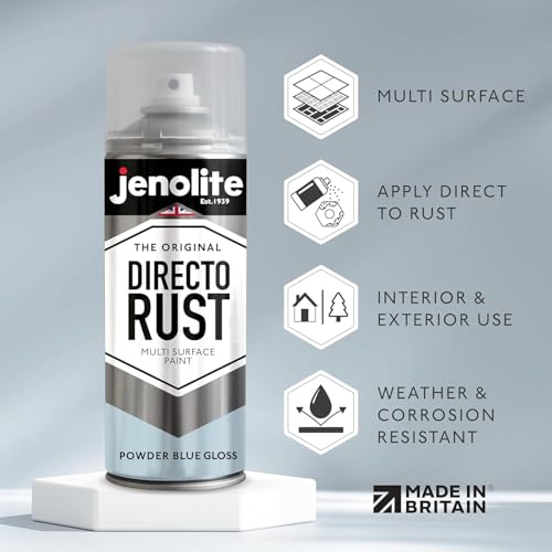 JENOLITE Directorust Gloss Spray Paint | POWEDER BLUE | 400ml | Direct To Rust Spray Paint For Metal | Multi Surface Gloss Spray Paint For Wood, Metal, Plastic, Ceramic | RAL 240 80 10