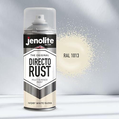 JENOLITE Directorust Gloss Spray Paint - Ivory White, 400ml - Direct to Rust, Multi Surface Gloss Spray Paint for Wood, Metal, Plastic, Ceramic - RAL 1013