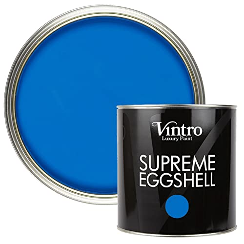Vintro Paint | Eggshell Paint | for Walls | Wood | Trim | Satin Furniture Paint | Interior & Exterior Use. (2.5 Litres, Cobalt - Blue)