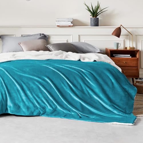 Bedsure Sherpa Fleece Throw Blanket - Thick and Warm, Fluffy Microfiber & Solid Soft Blankets for Bed and Couch Queen Size, Turquoise, 220x240cm