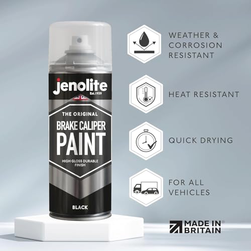 JENOLITE Brake Caliper Spray Paint | BLACK GLOSS | Brake and Caliper Restoration Spray Paint | Durable Finish, Heat and Petrol Resistant | 400ml | RAL 9005