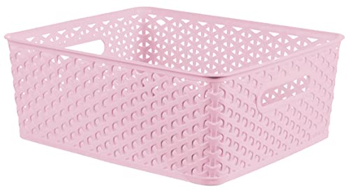 CURVER My Style Rattan Effect Set of 3 Kitchen, Living room, Bathroom, Bedroom, Utility Medium Rectangular Storage Baskets 13 Litres - Pink