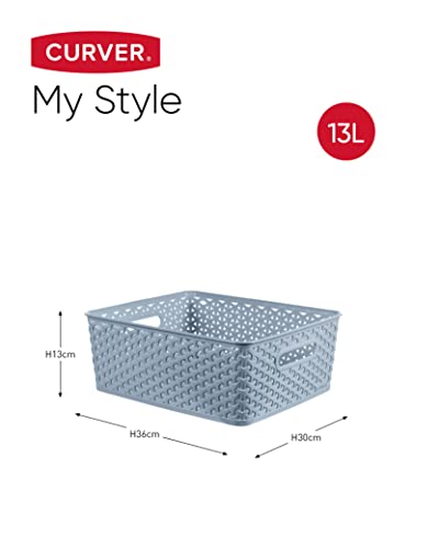 Curver My Style Rattan Effect Set of 3 Kitchen, Living room, Bathroom, Bedroom, Utility Large Rectangular Storage Baskets 18L - Blue