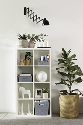 Curver My Style Rattan Effect Set of 3 Kitchen, Living room, Bathroom, Bedroom, Utility Medium Rectangular Storage Baskets 13 Litres - Grey