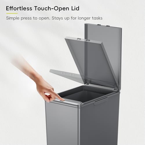 EKO Morandi 40L Kitchen Recycling Bin with Touch-Top Lid, Slim Plastic Rubbish Bin with Recycling Stickers and Easy-Clean Finish, Compact Design for Home or Office, Dark Grey