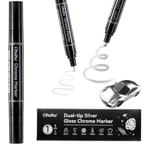 Ohuhu Chrome Paint Pen, 1 PCS Silver Liquid Chrome Markers with Gloss Mirror Water-Proof Lightfast Permanent Paint Markers for Repairing Metal Glass Plastic Car Tire DIY Crafts Models Posters