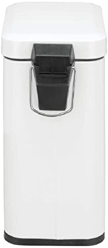 Slim Pedal Bin Square Toilet Brush Holder Bathroom Set Rectangular Removable Bucket Trash Recycling Bin (White 5L)