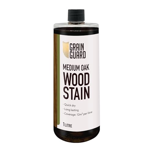 GRAIN GUARD Wood Stain Water Based | Medium Oak | 1L | Interior Furniture Stain | Light & Dark Stains | Eco-Friendly & Non-Toxic Wood Dye | Easy Application | Quick Dry & Low Odour