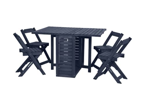 Furniture 321 Santos Folding Drop Leaf Butterfly Dining Set Outdoor and Indoor Use With 4 Stowaway Chairs Blue Durable Eucalyptus Wood