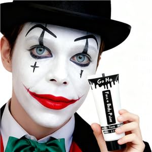 Go Ho Cream White Face Body Paint(2.37 oz),Water Based White Face Painting,Joker Clown Zombie Skeleton Makeup for SFX Cosplay Costumes Festivals Halloween Makeup