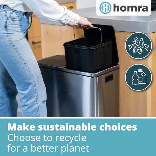 Homra Dual Kitchen Bin 60l – Double Rubbish Bins 2x30l – 2 Compartment Pedal System – Twin Section Waste&Recycling Separation – Soft Close Design – Inner Buckets with Handles - Stainless Steel