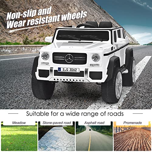 COSTWAY Kids Ride On Car, Licensed Mercedes Benz 12V Battery-powered Electric Vehicle Toy with 2 Motors, Remote Control, Lights, Horn, Music, Suspension Wheels for Boys Girls (White)