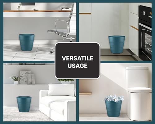 Zuvo Plastic Paper Bin 5L - Shatter-Proof Waste Basket for Office Desk & Bedroom Bin - Ideal Paper Bin with Wave Design - Navy Blue