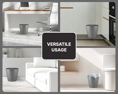 Zuvo Plastic Paper Bin 8L - Shatter-Proof Waste Basket for Office Desk & Bedroom Bin - Ideal Paper Bin with Wave Design - Grey