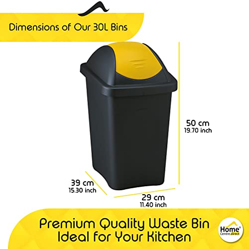Home Centre 30L Swing Lid Kitchen General Waste Recycling Bin Colour Code Management Made in Italy Quality Rubbish Office Storage Trash Containers Yellow-Black