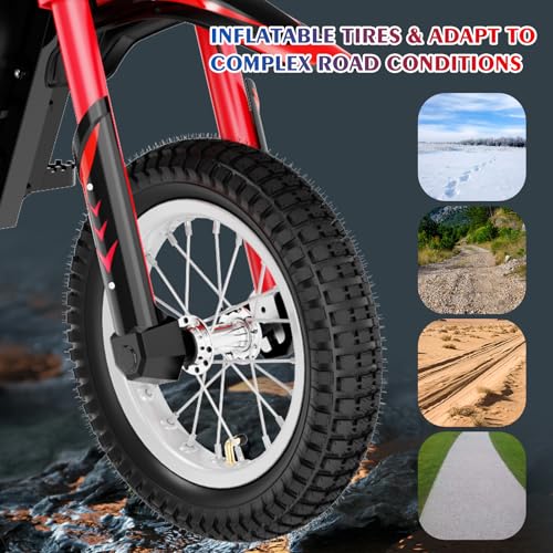 EVERCROSS EV12M Kids Ride On Motorcycle, Electric Motorcycle with 300W Motor, 3 Speed Modos, 9.3Miles Long-Range, 12'' Pneumatic Tire, Motor Cross for 110cm+ Height