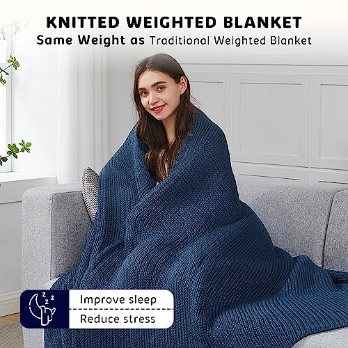 L'AGRATY Knitted Weighted Blanket - 50"x60" 7lbs Cooling Chunky Knit Heavy Blanket for Adults Braided Crochet Throw Thick Cable Yarn Knit Decorative Blanket No Beads Evenly Weighted Machine Washable